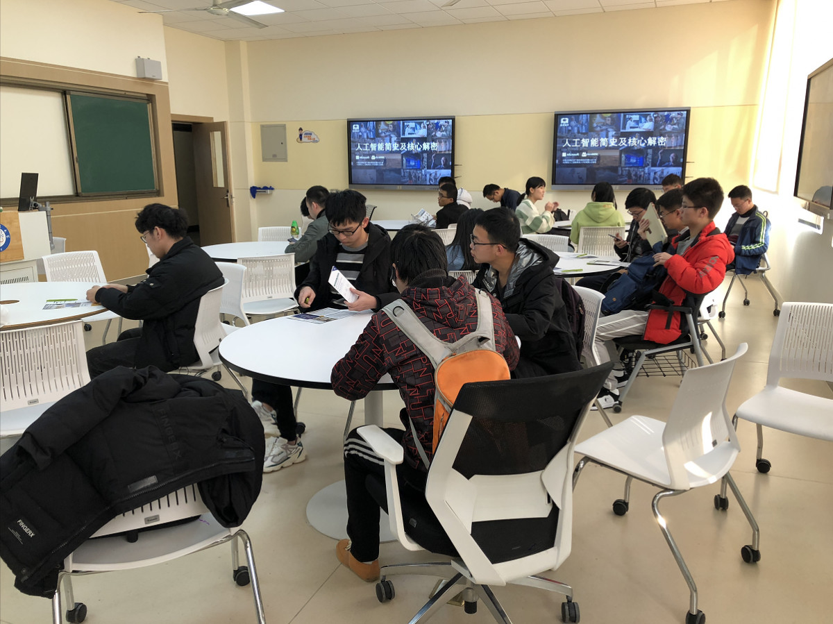 签到完毕,讲座正式开始。在同学们的热烈掌声中,微软专家Jason Guan上台正式给同学们开始分析揭秘人工智能的简史与核心。从人工智能的发展历史到人工智能的工作原理与应用场景,Jason都为同学们进行了一一解密。
