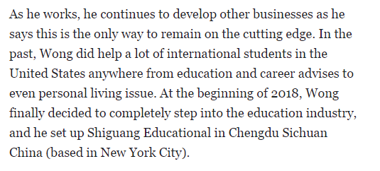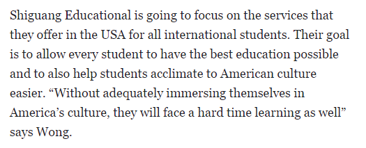 “我想要做的是为中国学生搭建一个中国学子可以深入学习美国文化,并且让国内的父母能够与在海外求学的学生时刻保持联系的桥梁。并不只是一个所谓的企业家”