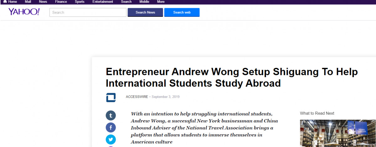 ​近日,拾光留学创始人Andrew Wong受邀接受了雅虎官网杰出教育人才的专访,在专访现场,Andrew向大家分享了创立拾光留学的初衷与契机,也正是因为自身得天独厚的优势与见解,让Andrew在助力中国学子出国留学这条路上,一直保持着为学生负责和让家长放心的初心。