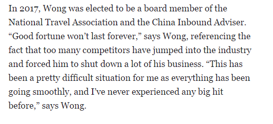 时间来到2017年,由于越来越多的竞争者进入到旅游行业,Andrew不得不放弃之前的很多产业链。将重心放在了中国学生到美国游学,美国名校科研项目和留学申请上面。“对于我来说,所有产业的进展都如此缓慢,这是我之前从未遇到过的打击”面对Yahoo的镜头,Andrew没有掩饰当时自己遇到的困境。
