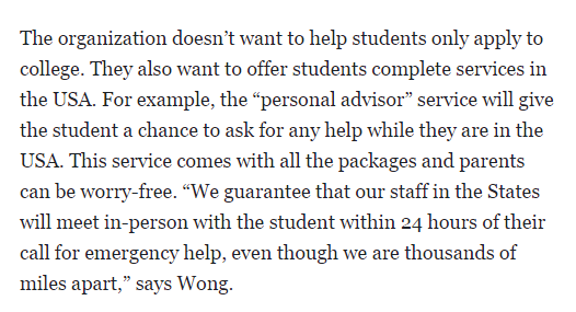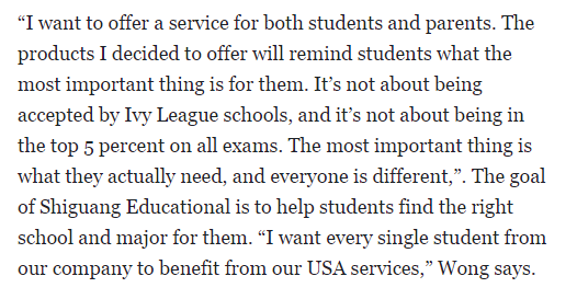 “我想要做的是为学生和家长都提供超值便利的服务,并不只是简单概念上的将学生送出国外去留学。”